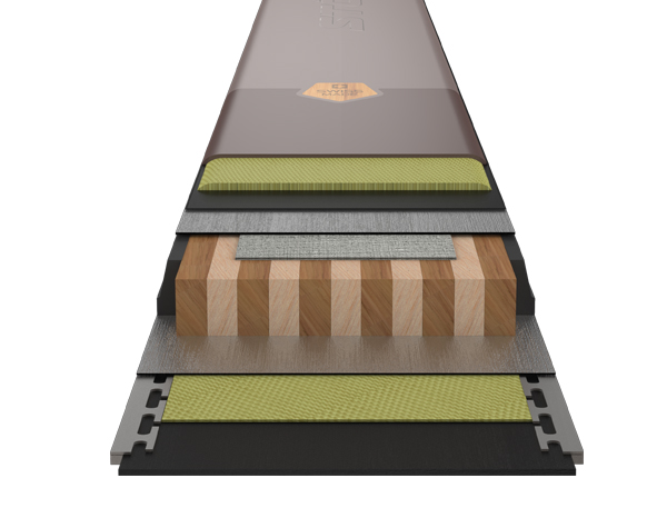 다크 레이싱 사이드월과 약간 부드러운 우드 코어를 장착한이 스키는